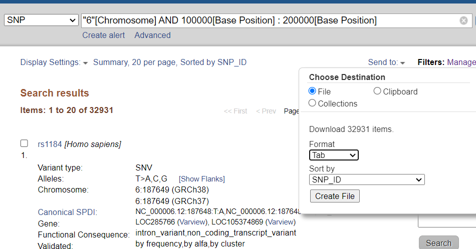dbSNPではchromosome, start position, end positionなどを指定して検索することができる。